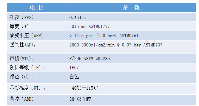 4、ePTFE 透氣膜性能參數(shù)